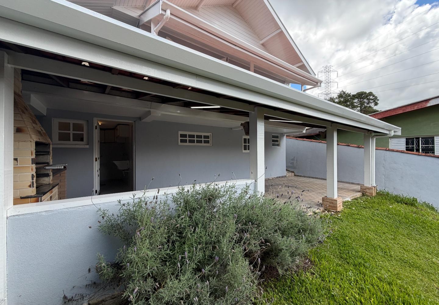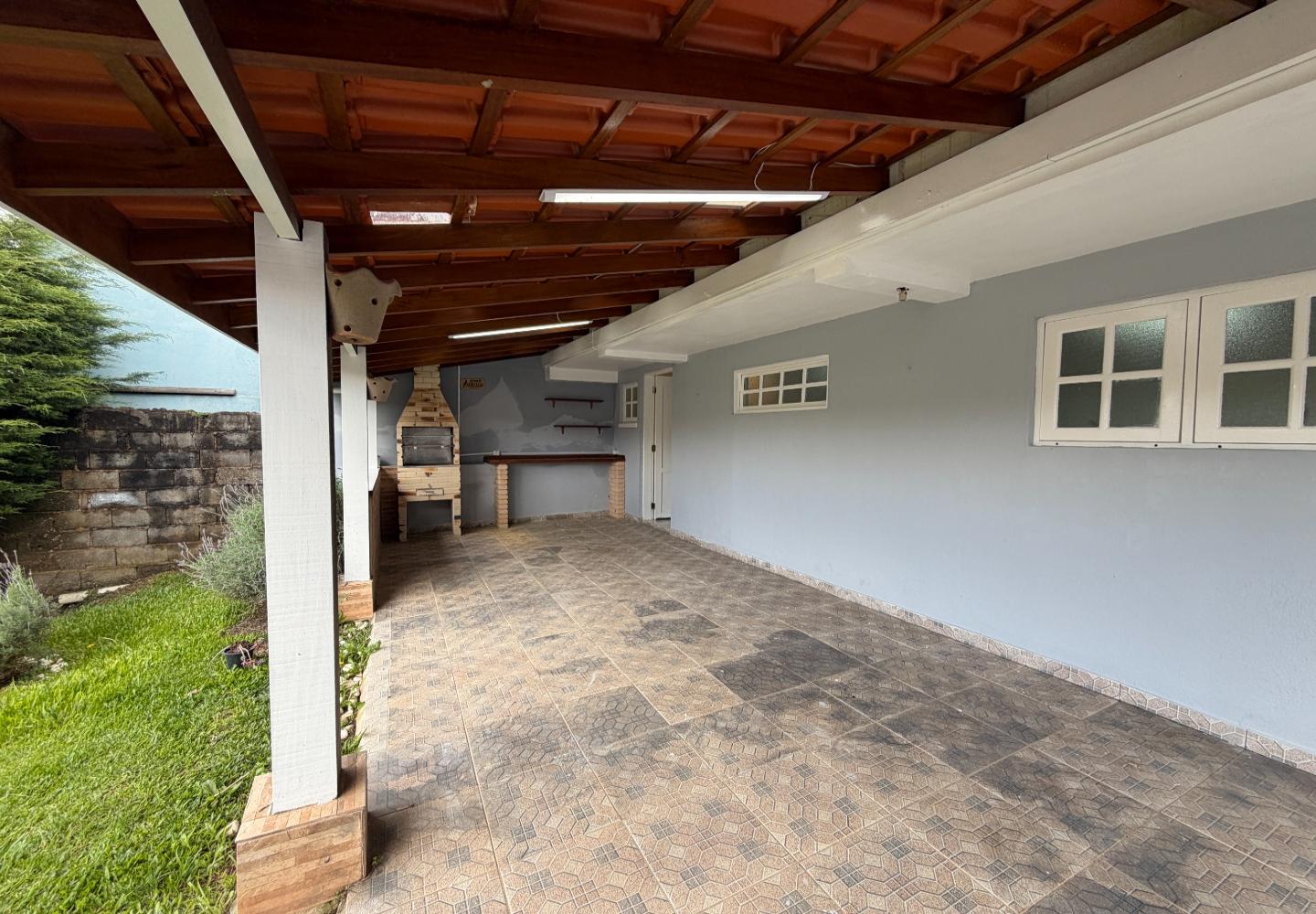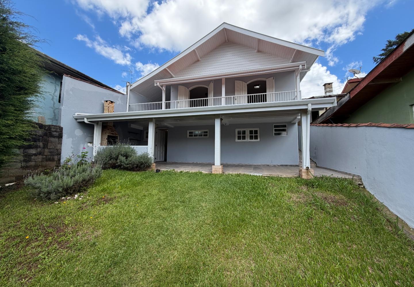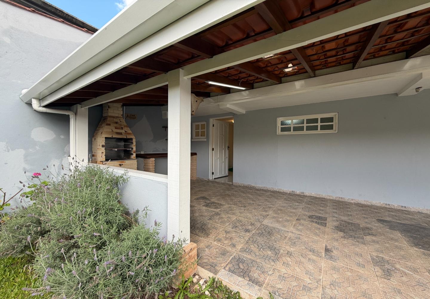 Na casa principal, o pavimento superior reúne a sala, dois dormitórios e um banheiro social. Os dois quartos têm varanda, garantindo boa iluminação e ventilação. No piso inferior, temos a cozinha, área de serviço, além de um banheiro completo de apoio. Ainda na parte inferior, a área gourmet, que funciona muito bem para o uso diário.