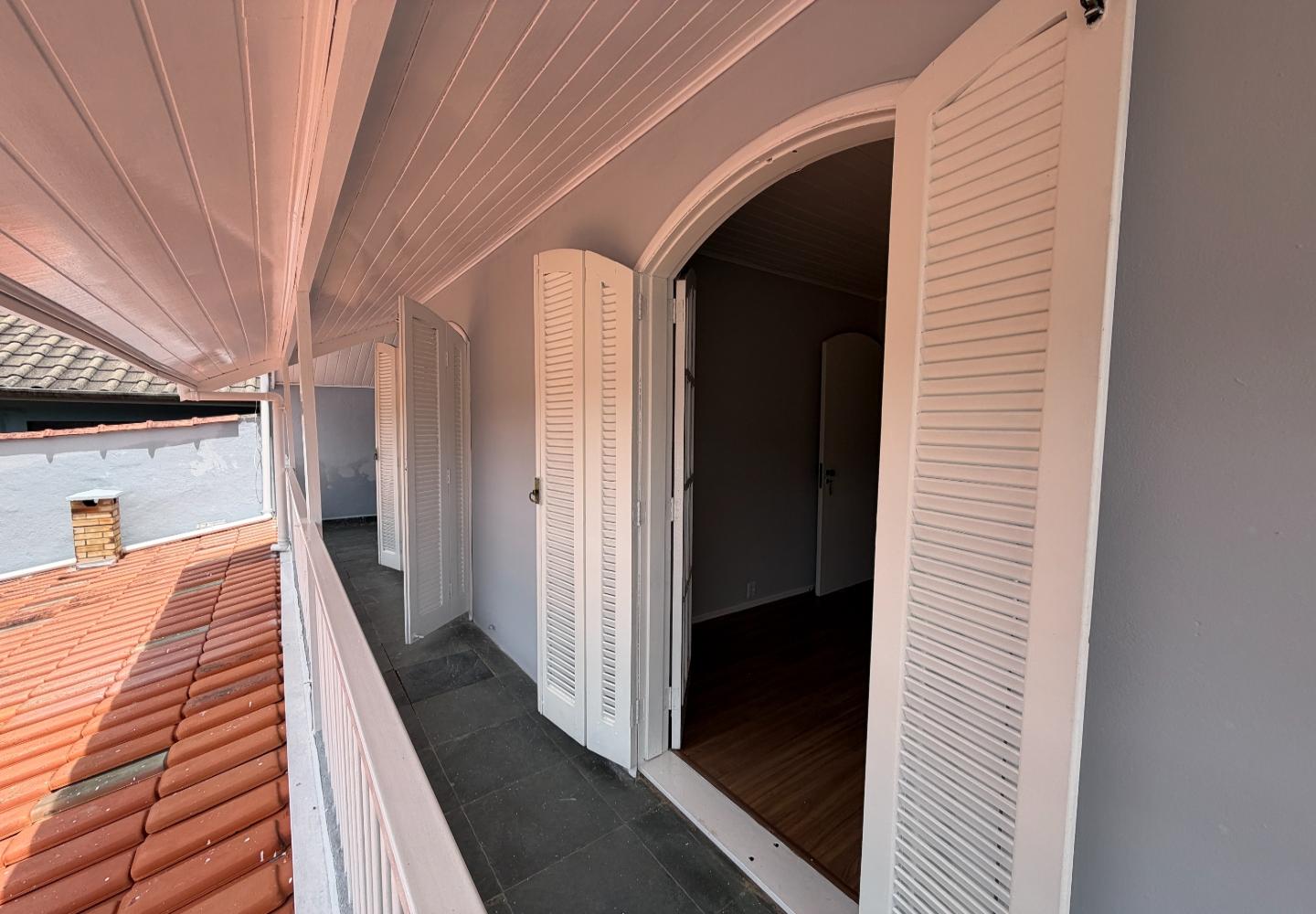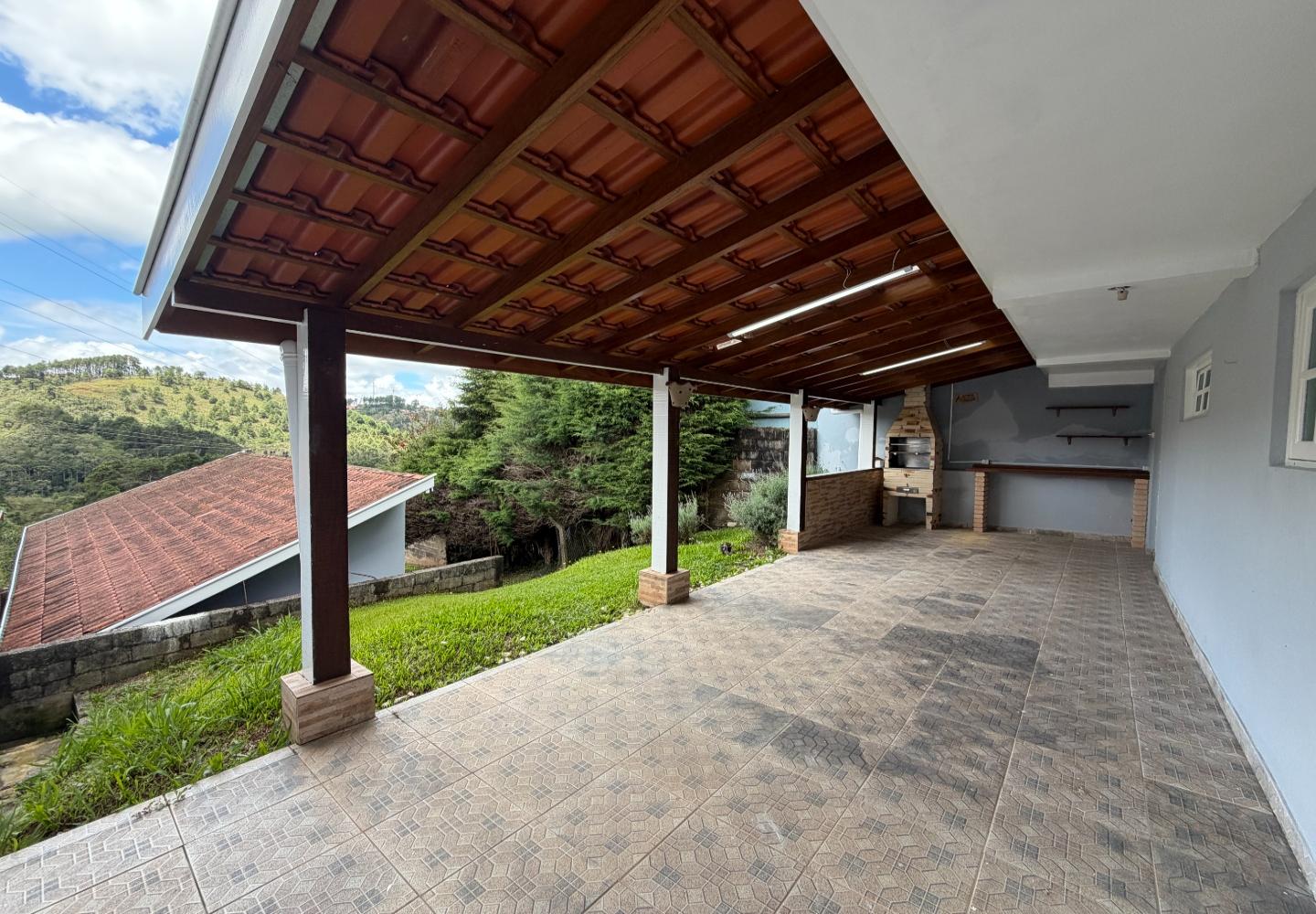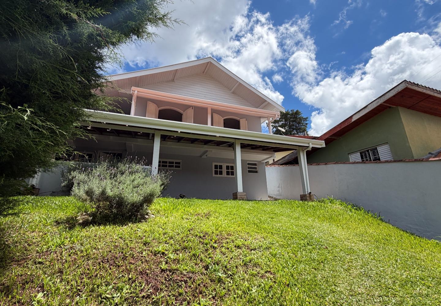 Na casa principal, o pavimento superior reúne a sala, dois dormitórios e um banheiro social. Os dois quartos têm varanda, garantindo boa iluminação e ventilação. No piso inferior, temos a cozinha, área de serviço, além de um banheiro completo de apoio. Ainda na parte inferior, a área gourmet, que funciona muito bem para o uso diário.
