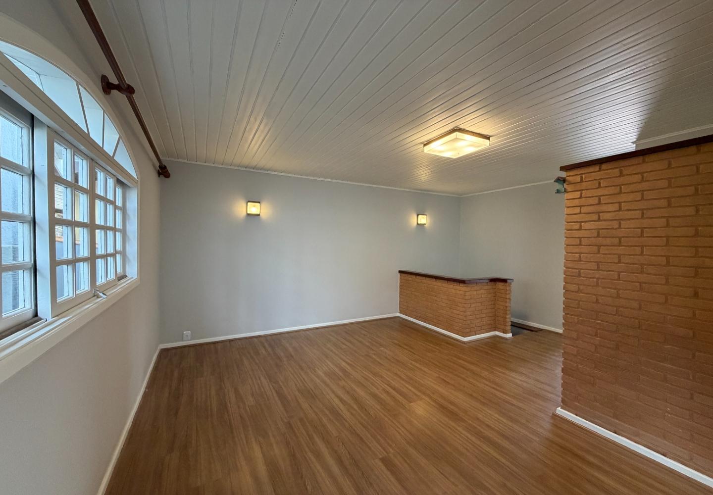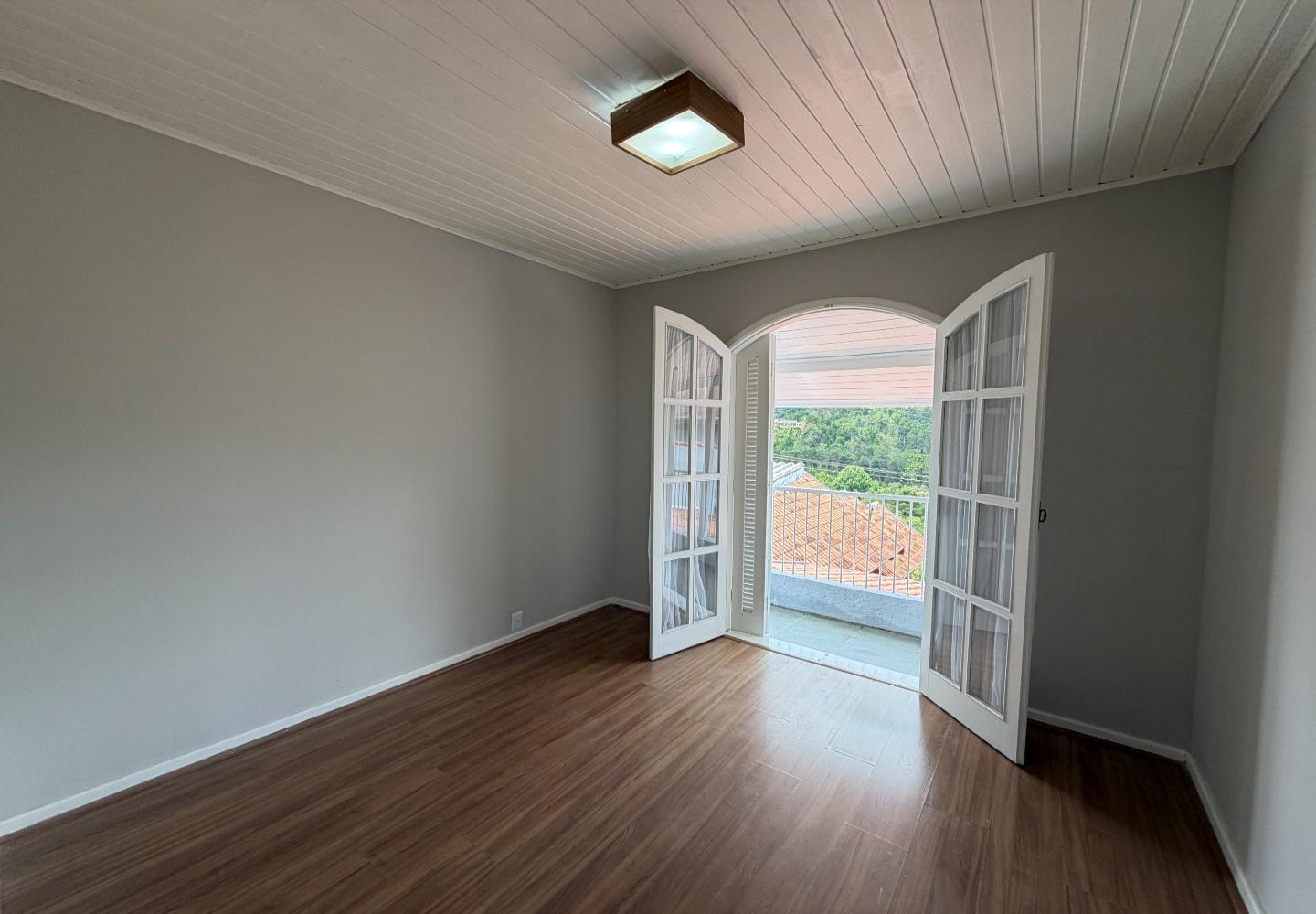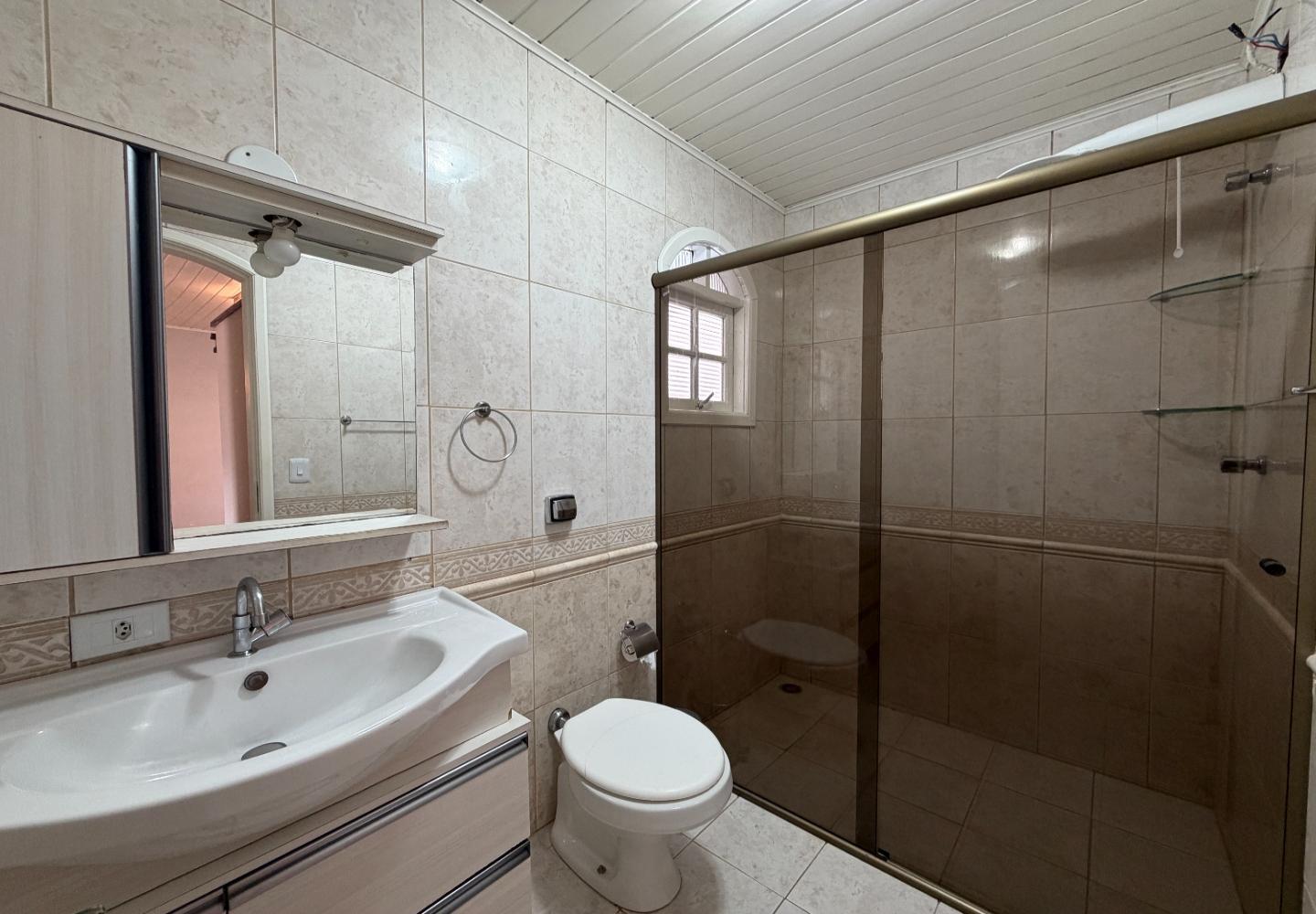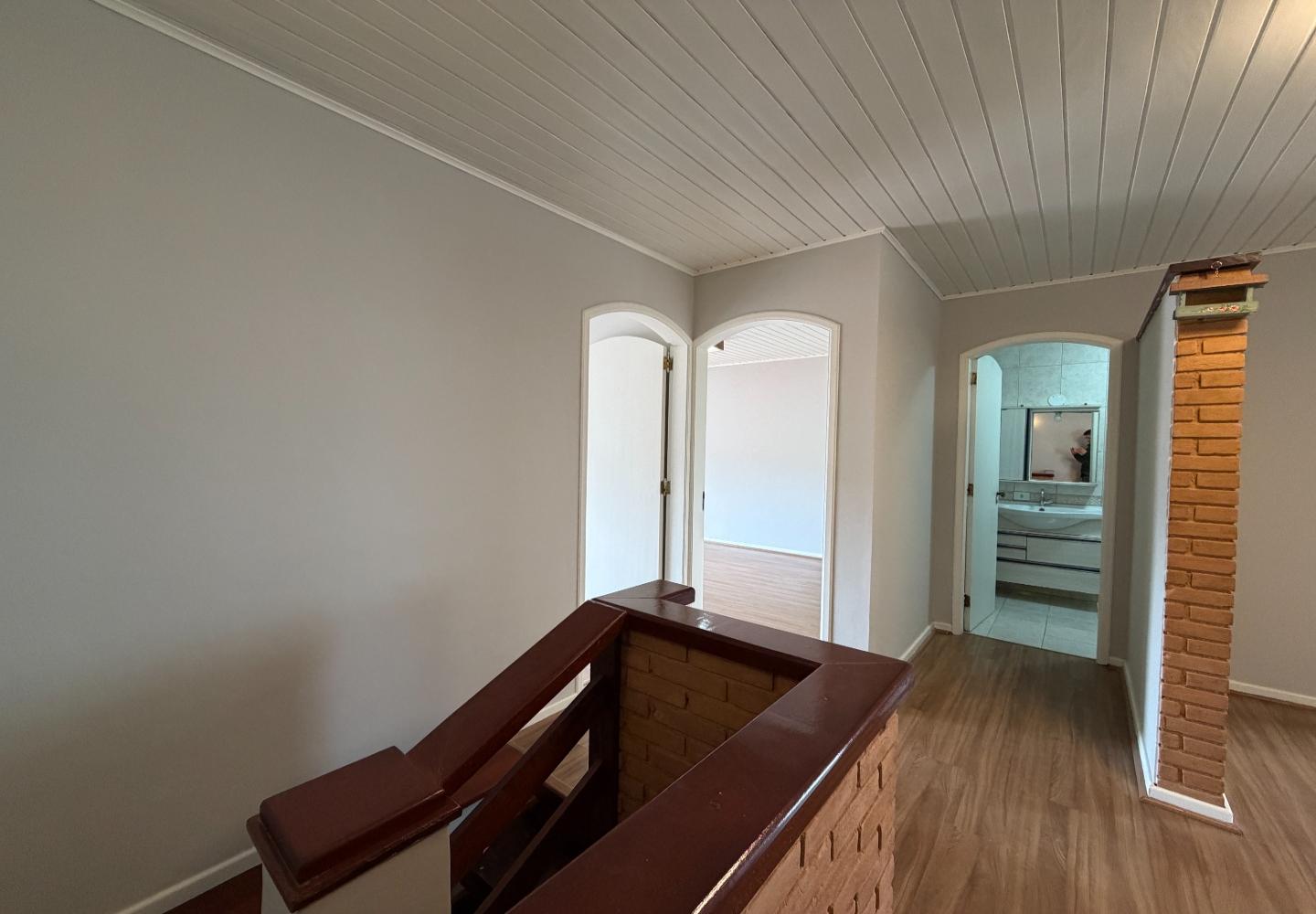 Na casa principal, o pavimento superior reúne a sala, dois dormitórios e um banheiro social. Os dois quartos têm varanda, garantindo boa iluminação e ventilação. No piso inferior, temos a cozinha, área de serviço, além de um banheiro completo de apoio. Ainda na parte inferior, a área gourmet, que funciona muito bem para o uso diário.