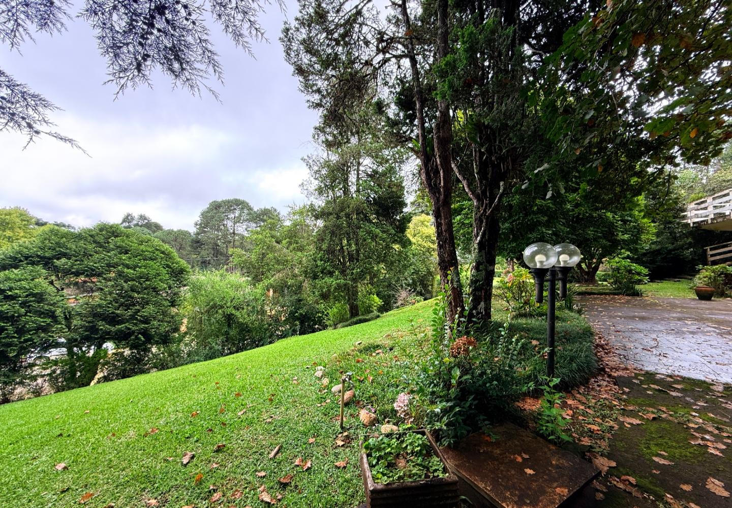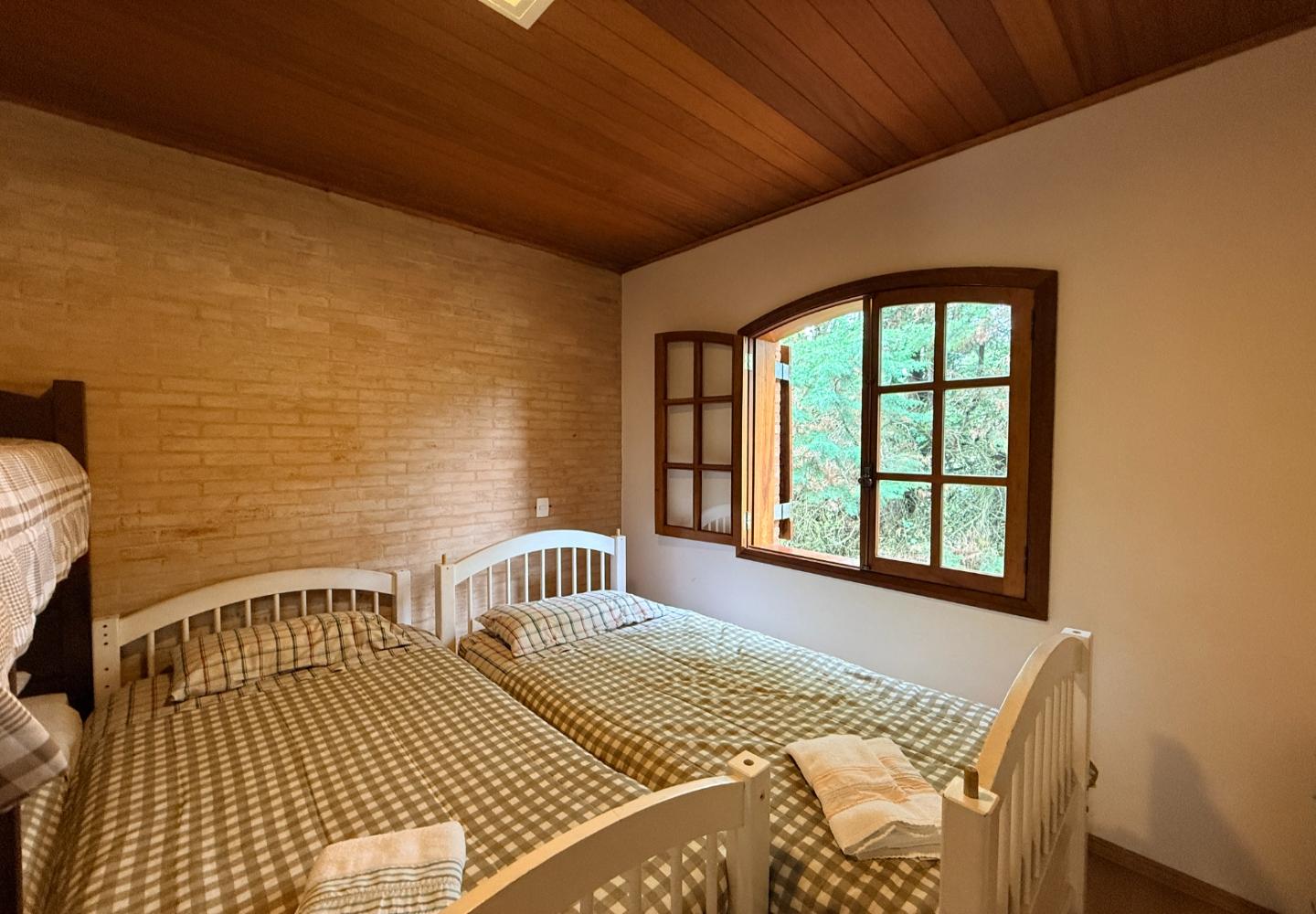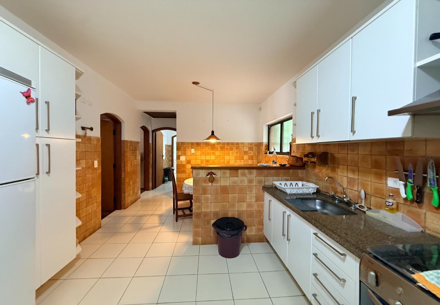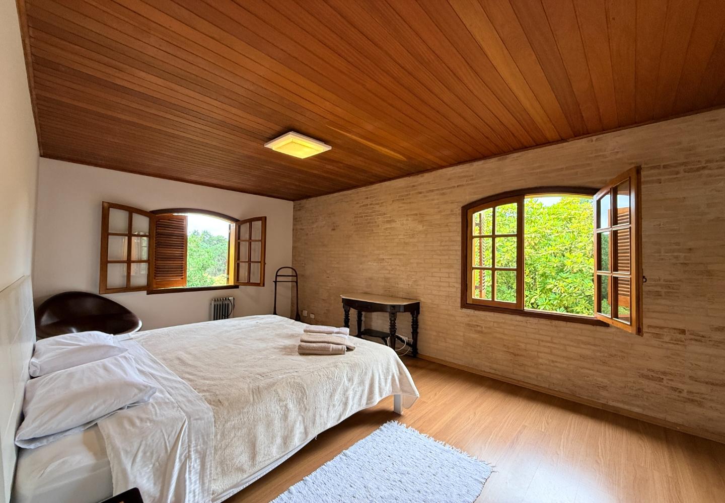 Localizada no Residencial Jardim Véu da Noiva, esta casa tem uma implantação muito bem resolvida, com 2.065 m² de terreno e 355 m² de área construída, valorizando o jardim amplo, a privacidade e a integração dos ambientes com o verde ao redor. Logo na entrada, o imóvel se organiza com um living de apoio para sala de TV e lavabo. Em seguida, a sala principal concentra a área social da casa, com sala de estar, sala de jantar, lareira em um nível rebaixado que deixa o ambiente mais agradável e acesso a um deck amplo voltado para o jardim. Ao lado da sala de jantar estão a cozinha, a despensa, a área de serviço e a dependência de funcionários com dormitório e banheiro. No pavimento superior fica a área íntima, com duas suítes, mais dois dormitórios atendidos por banheiro social, além de mezanino e sacada. Na parte inferior, a casa conta com mais um living com lareira, sauna seca, lavabo e duas vagas de garagem cobertas. É um imóvel com boa distribuição, ambientes espaçosos e uma relação muito forte com a área externa, em uma região tranquila e cercada por natureza.