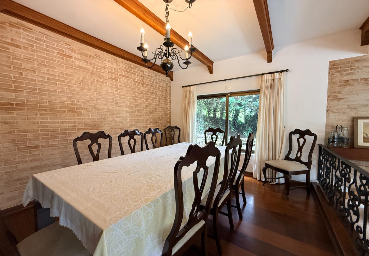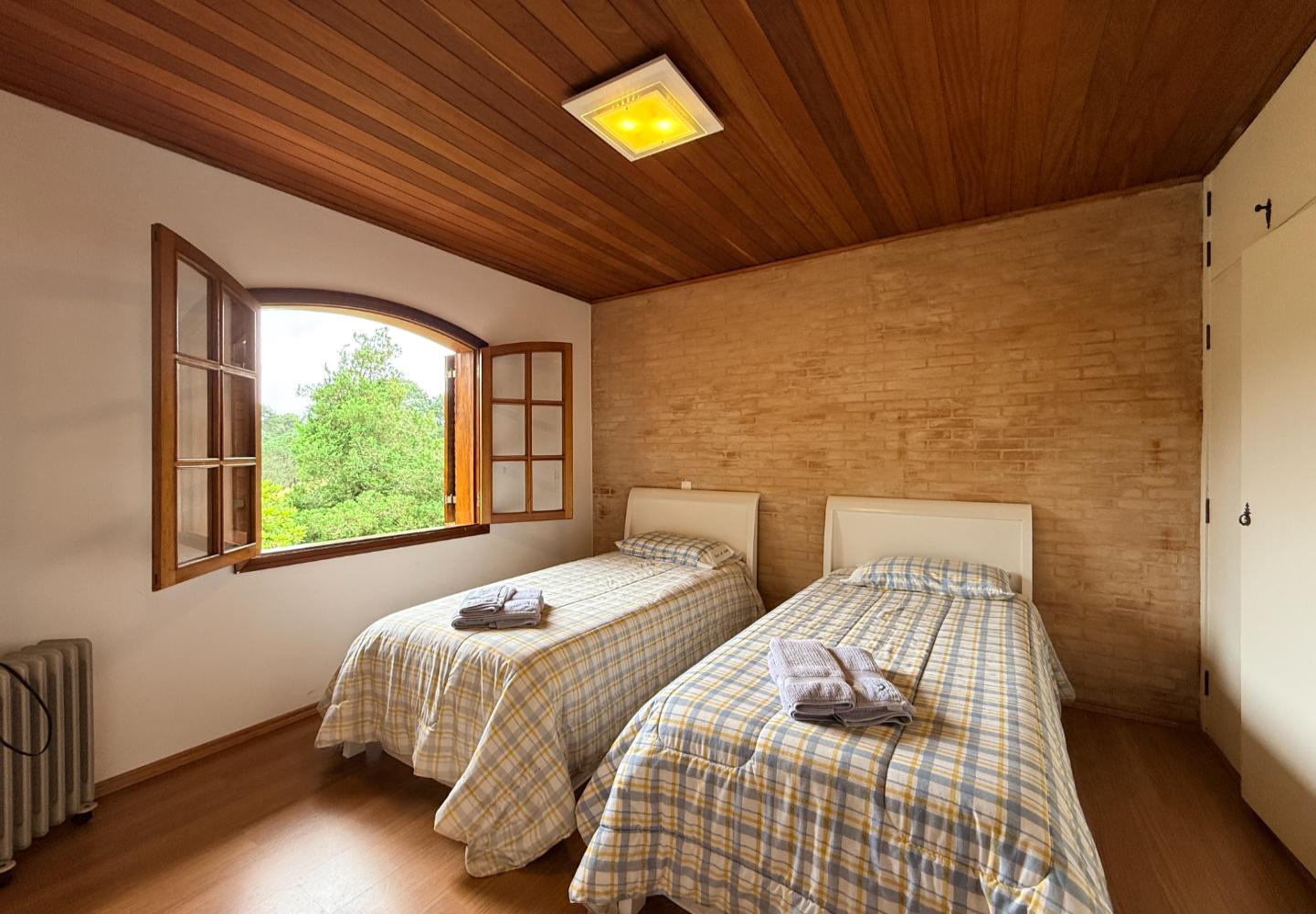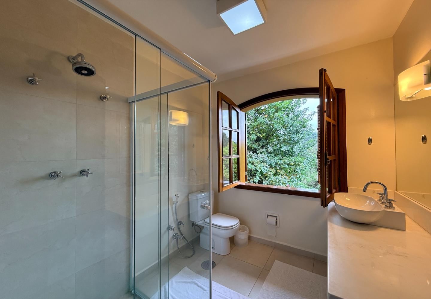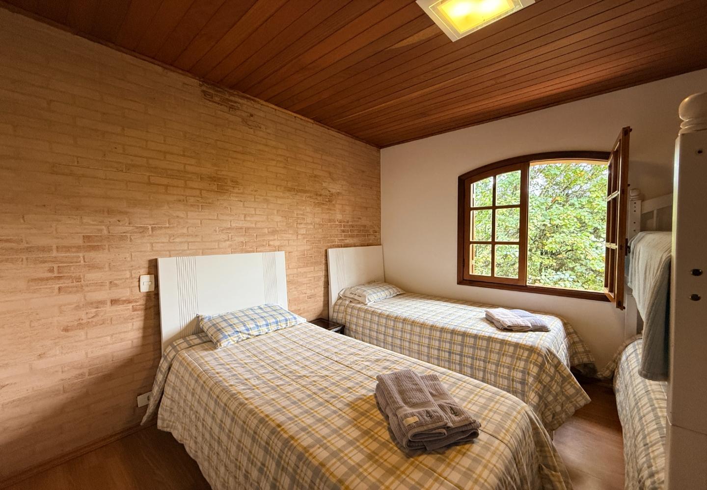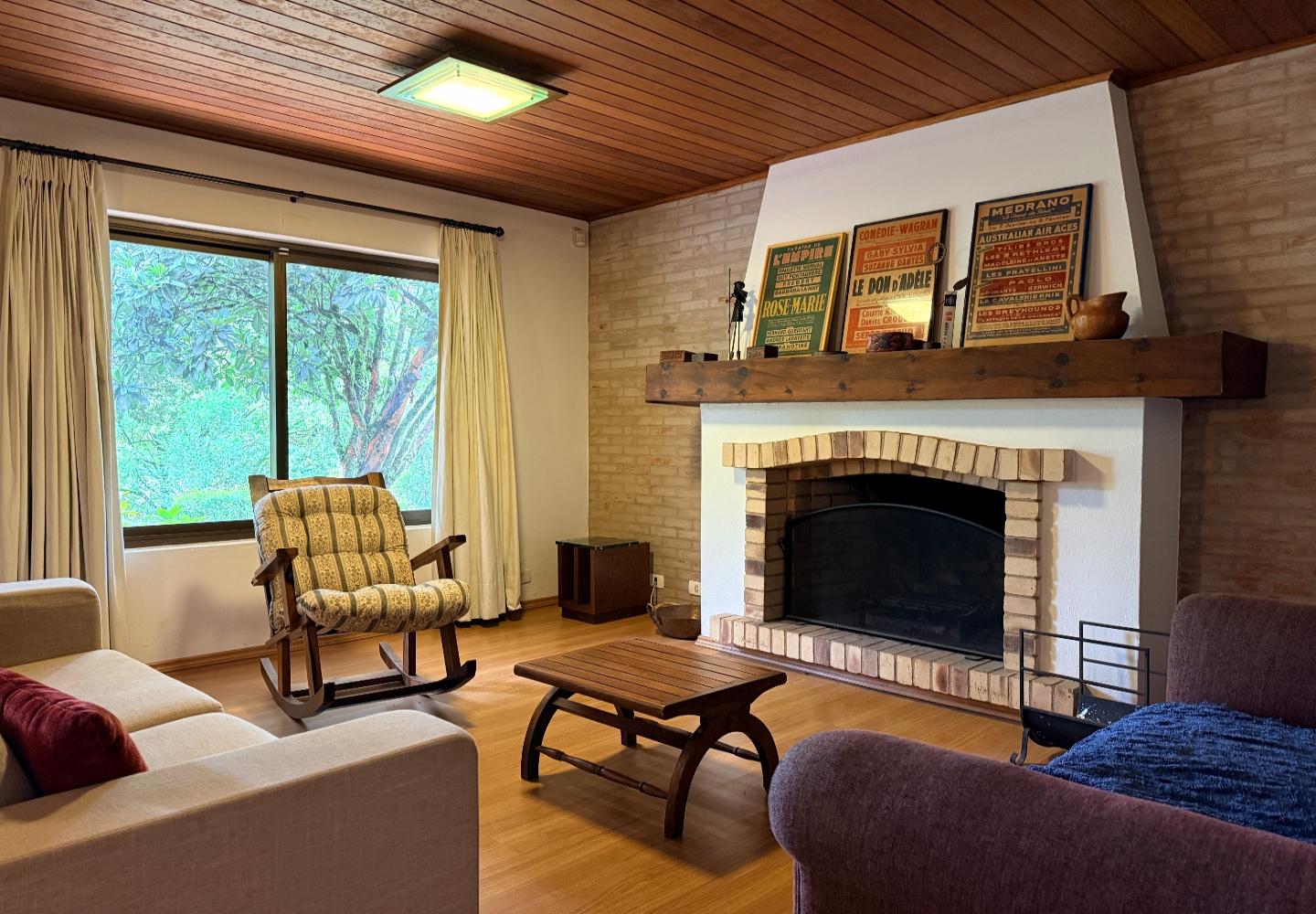 Localizada no Residencial Jardim Véu da Noiva, esta casa tem uma implantação muito bem resolvida, com 2.065 m² de terreno e 355 m² de área construída, valorizando o jardim amplo, a privacidade e a integração dos ambientes com o verde ao redor. Logo na entrada, o imóvel se organiza com um living de apoio para sala de TV e lavabo. Em seguida, a sala principal concentra a área social da casa, com sala de estar, sala de jantar, lareira em um nível rebaixado que deixa o ambiente mais agradável e acesso a um deck amplo voltado para o jardim. Ao lado da sala de jantar estão a cozinha, a despensa, a área de serviço e a dependência de funcionários com dormitório e banheiro. No pavimento superior fica a área íntima, com duas suítes, mais dois dormitórios atendidos por banheiro social, além de mezanino e sacada. Na parte inferior, a casa conta com mais um living com lareira, sauna seca, lavabo e duas vagas de garagem cobertas. É um imóvel com boa distribuição, ambientes espaçosos e uma relação muito forte com a área externa, em uma região tranquila e cercada por natureza.