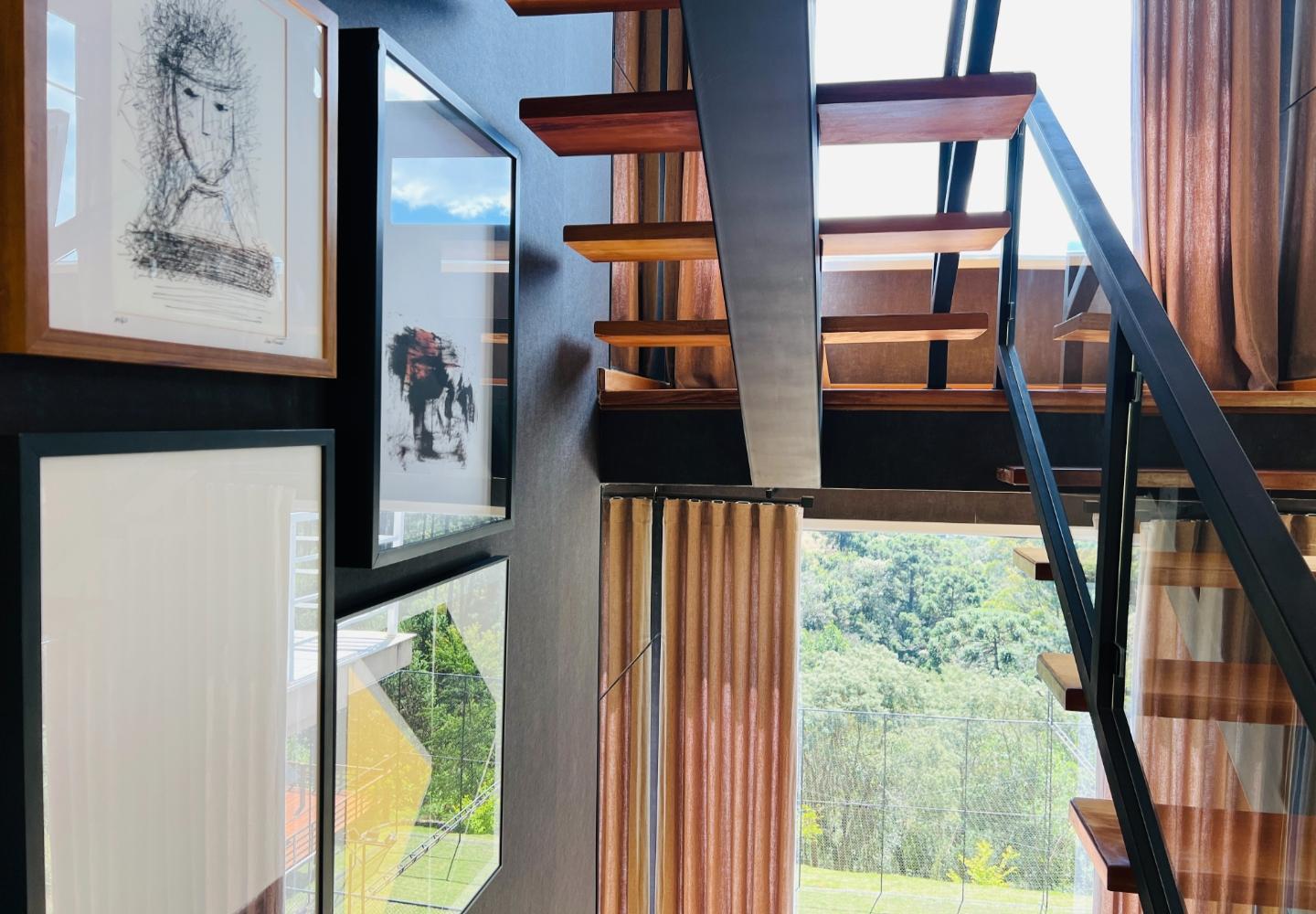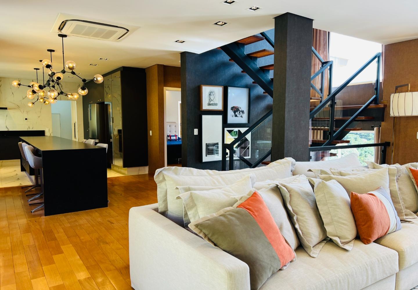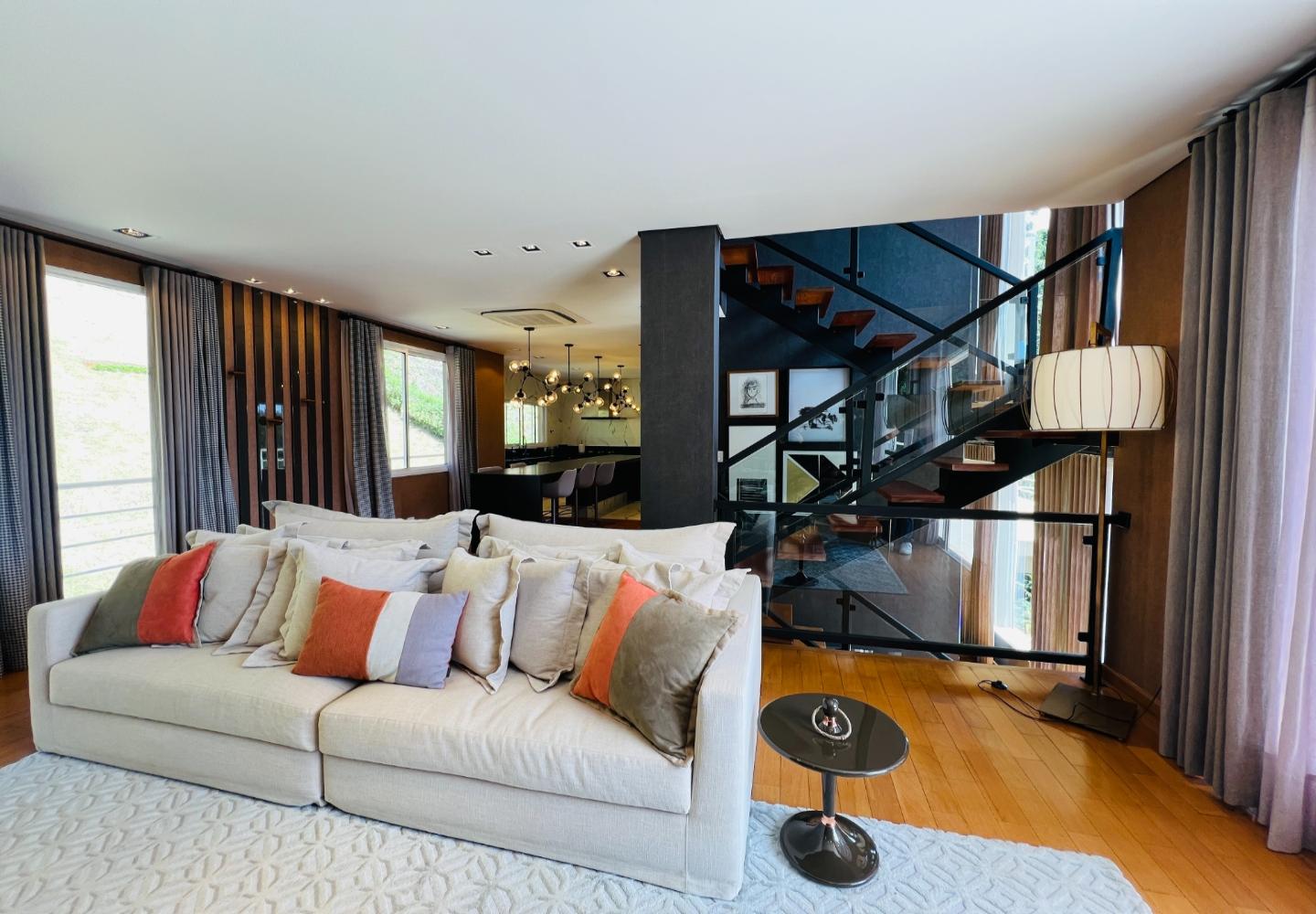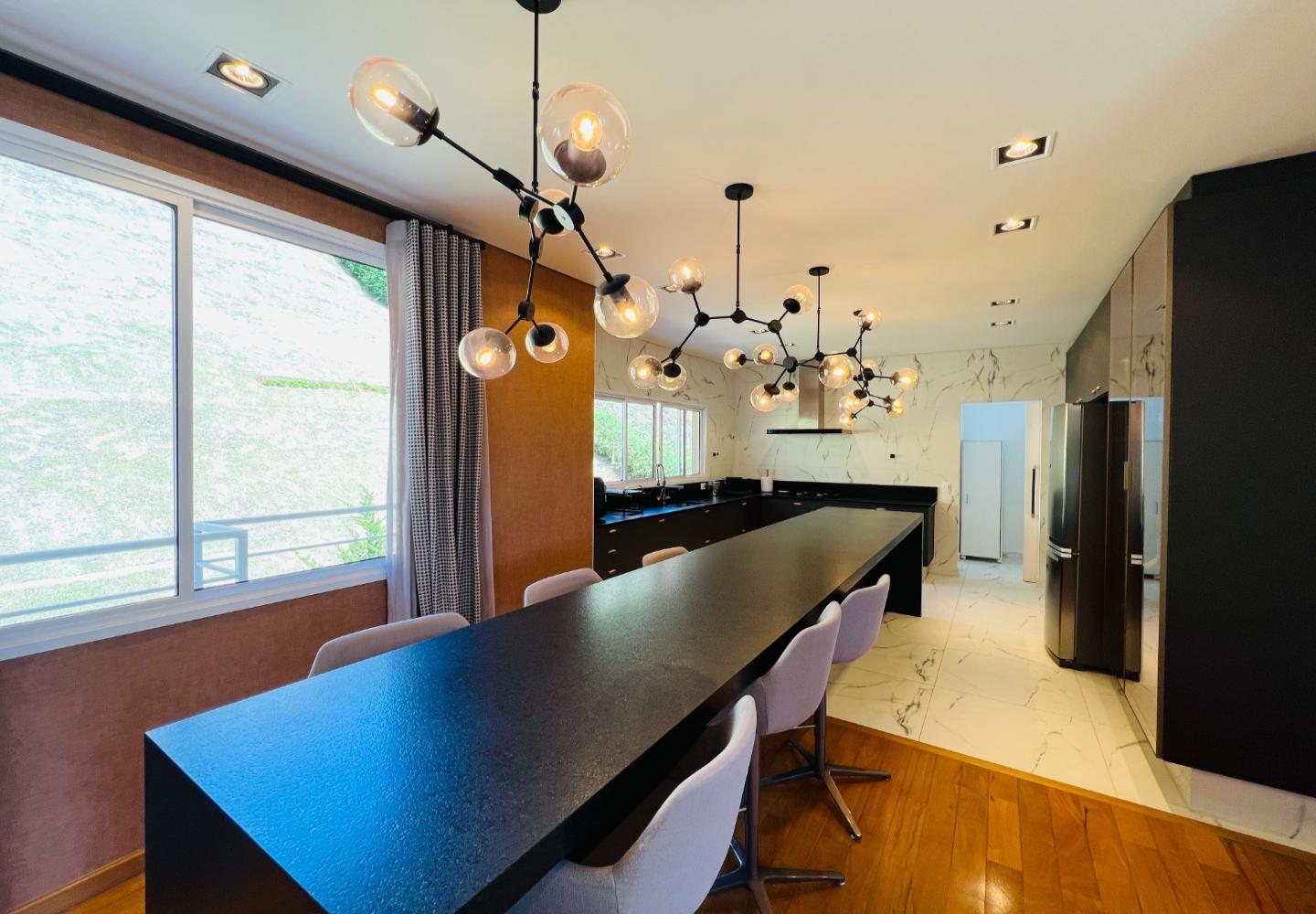 Em um terreno de 3.100 m², esta casa contemporânea foi pensada para unir conforto, tecnologia e uma bela integração com a paisagem. São 470 m² de área construída, com amplos ambientes, ótima iluminação natural e vista livre para as montanhas.