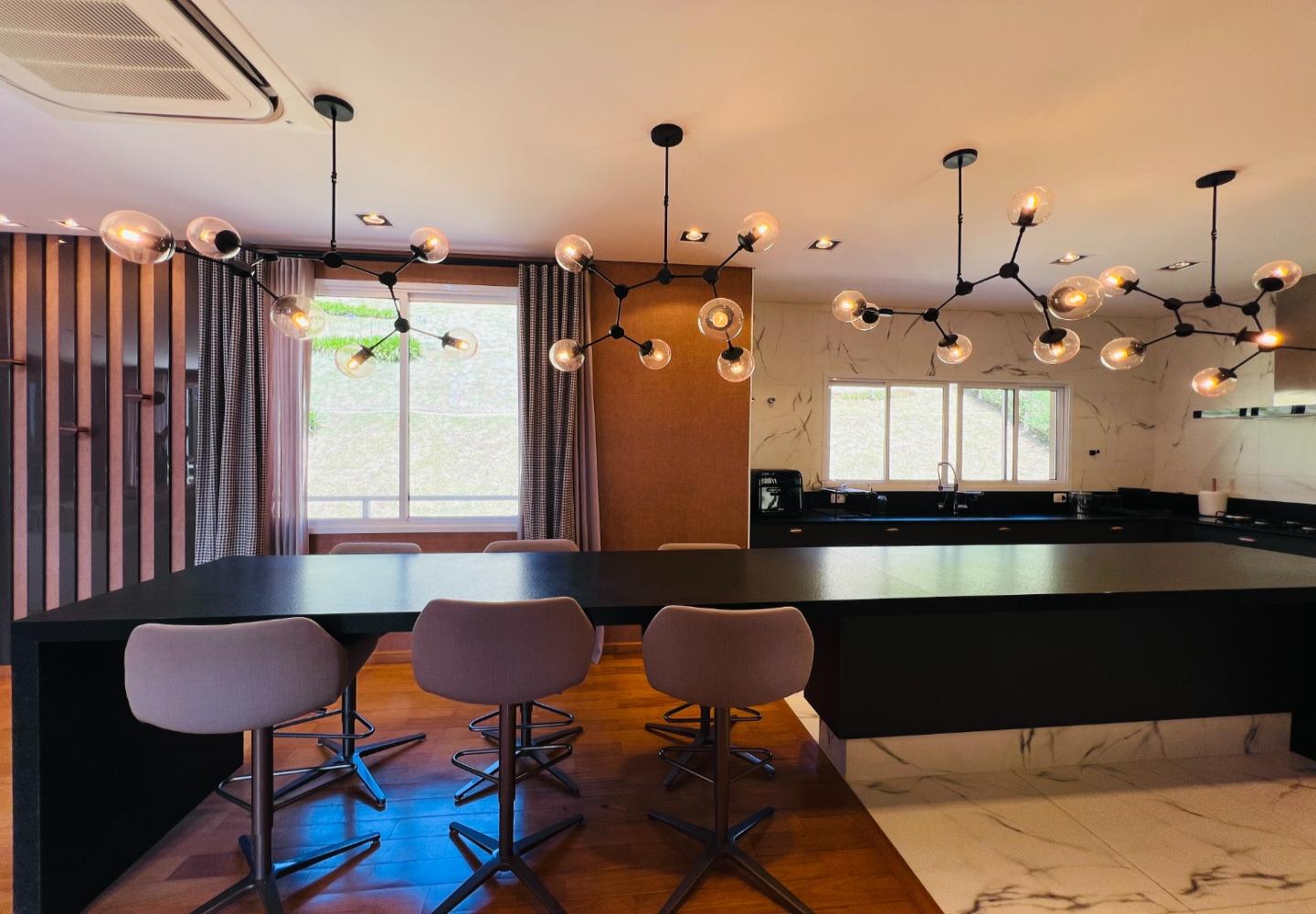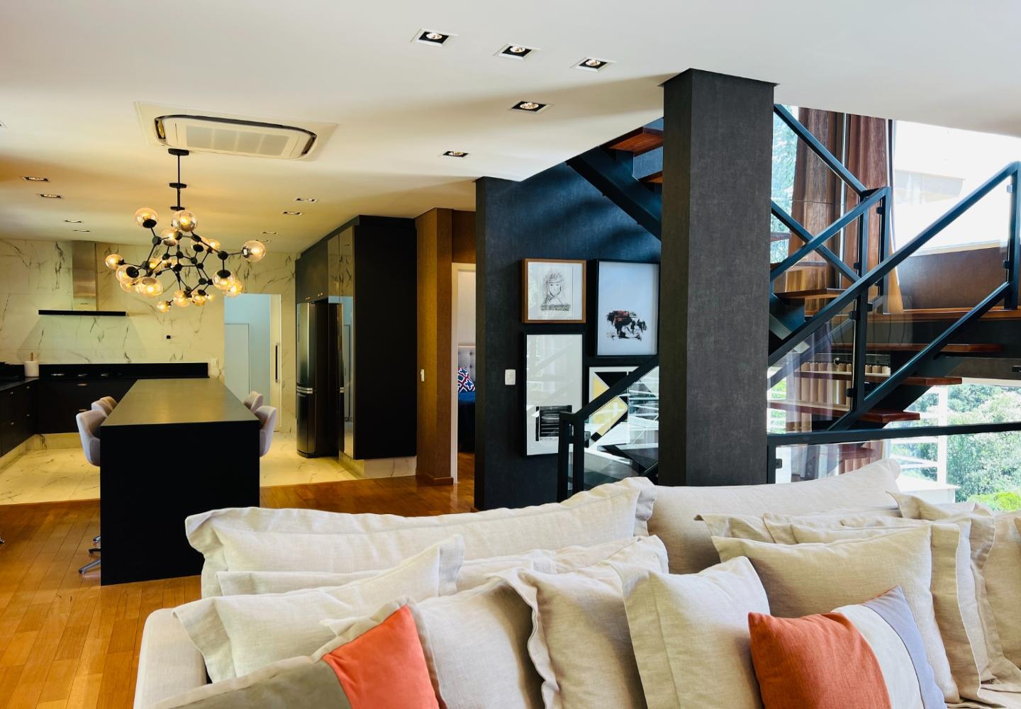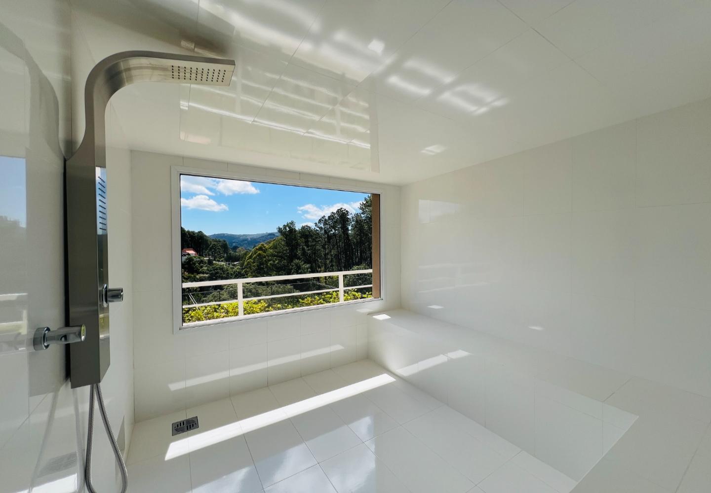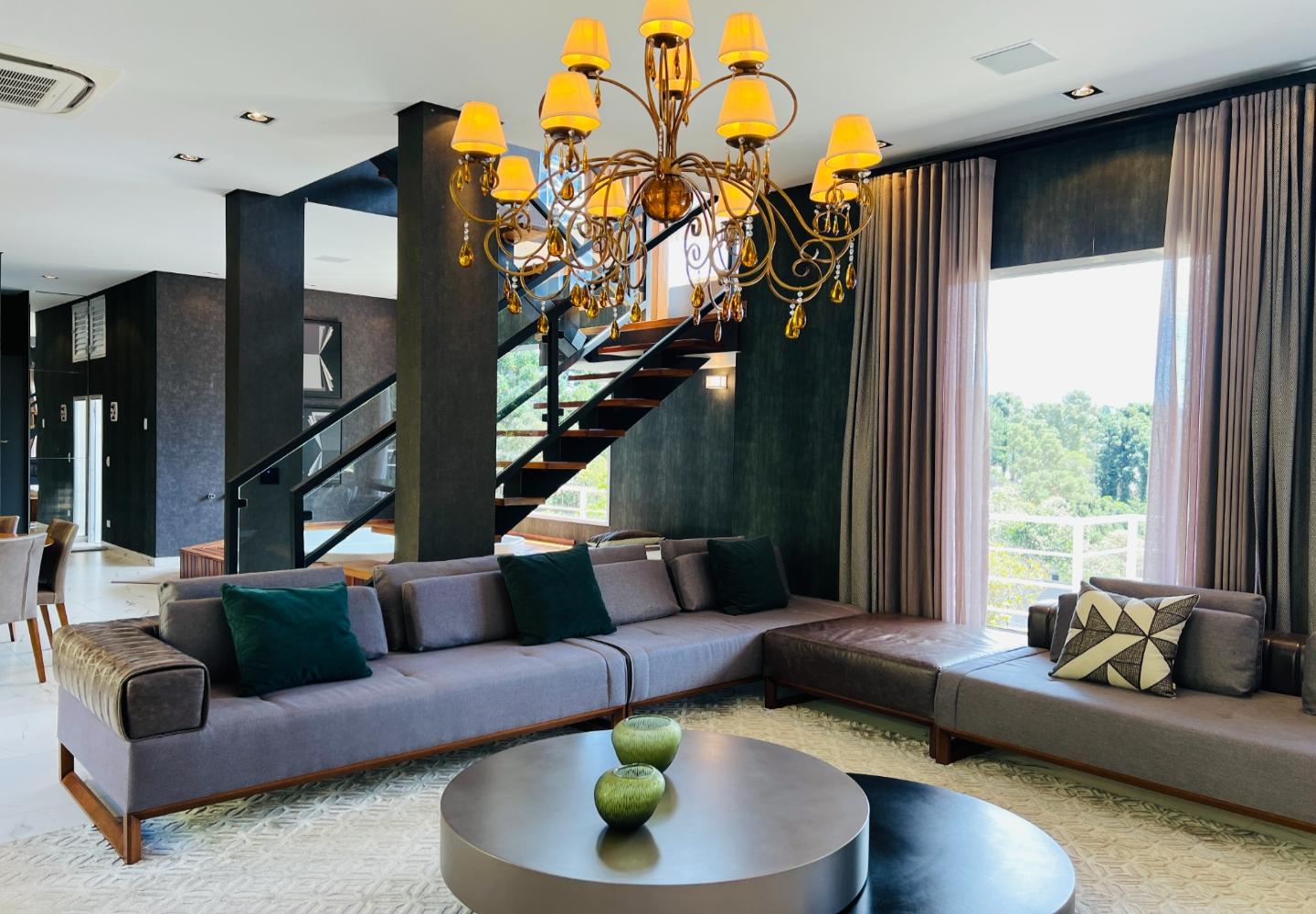 Em um terreno de 3.100 m², esta casa contemporânea foi pensada para unir conforto, tecnologia e uma bela integração com a paisagem. São 470 m² de área construída, com amplos ambientes, ótima iluminação natural e vista livre para as montanhas.