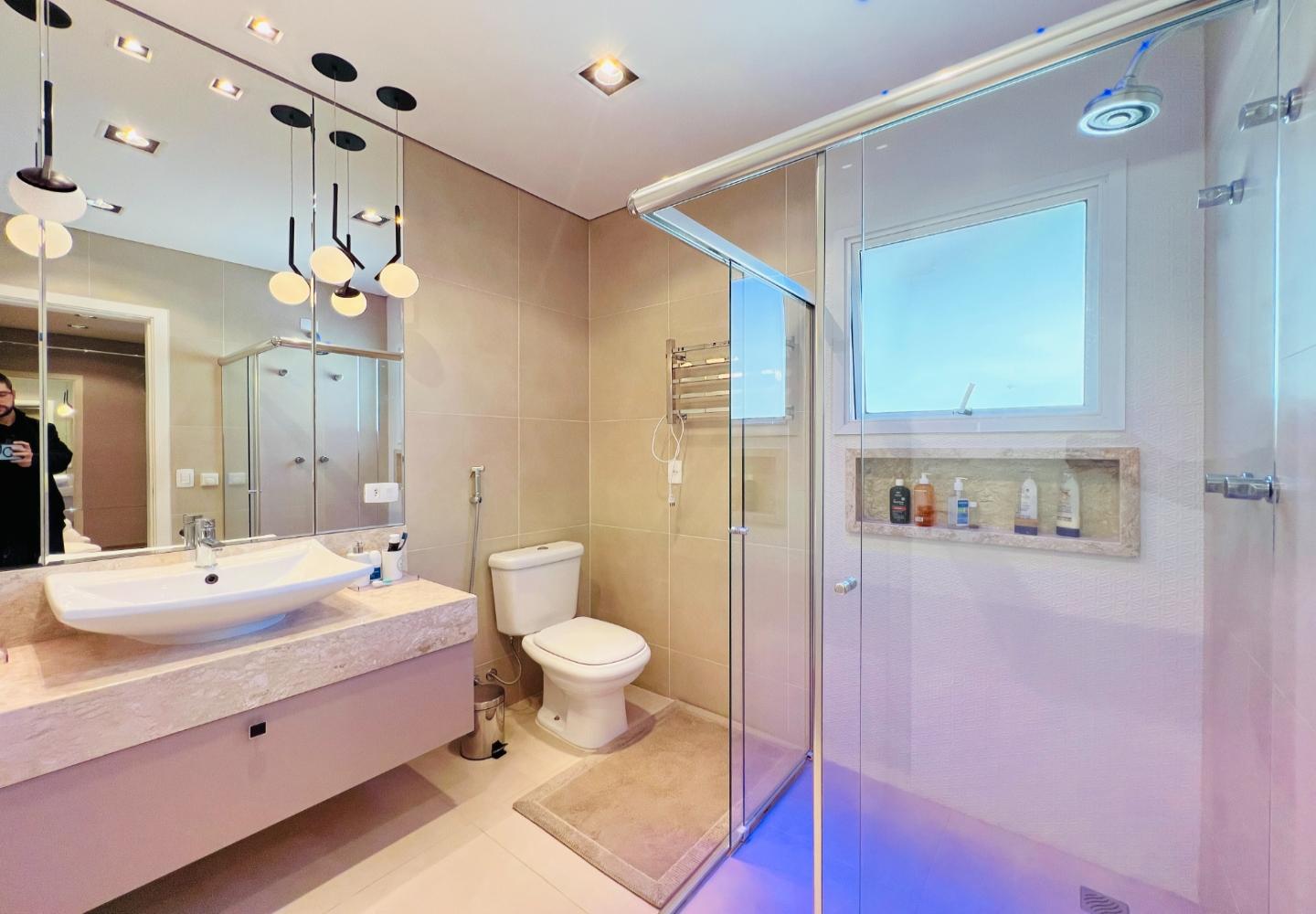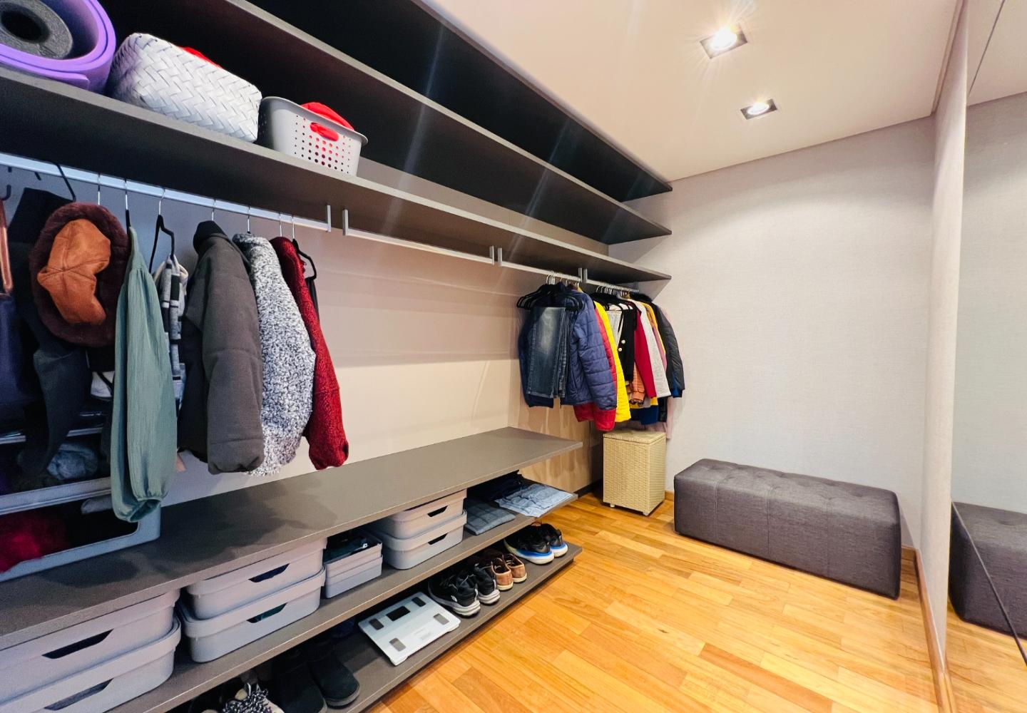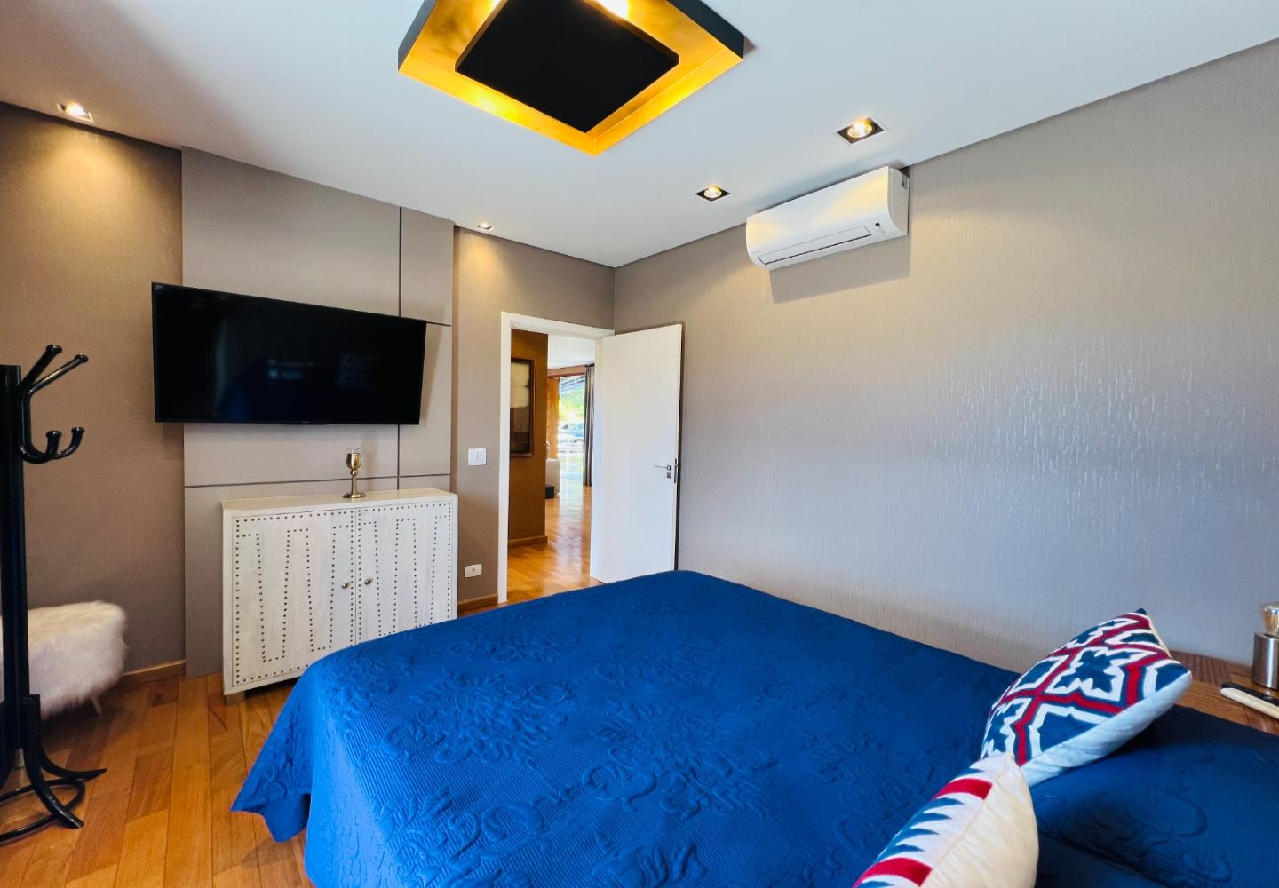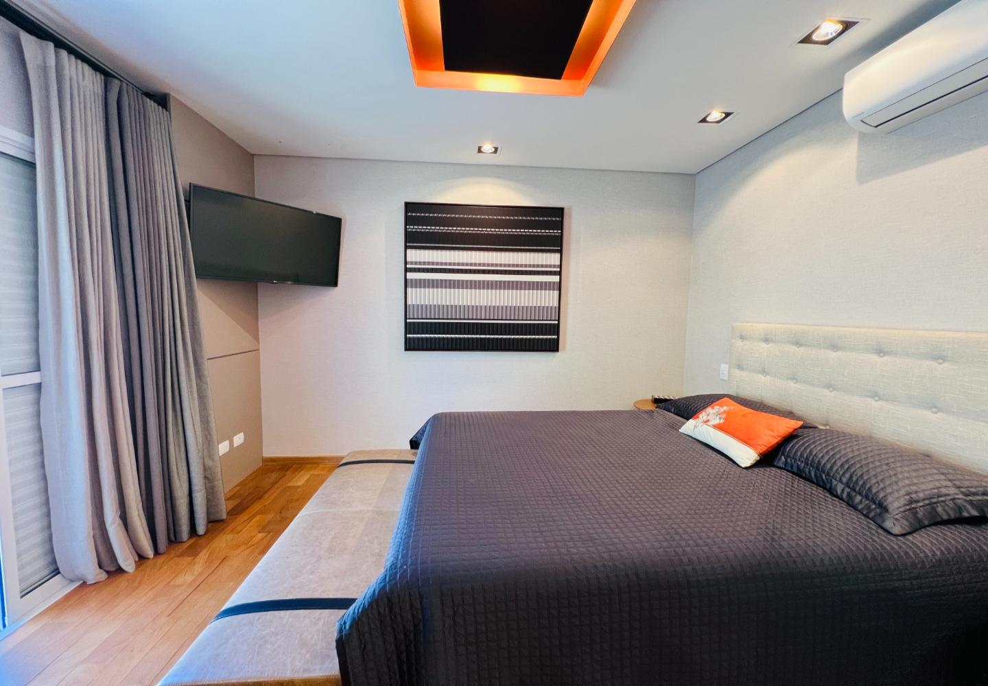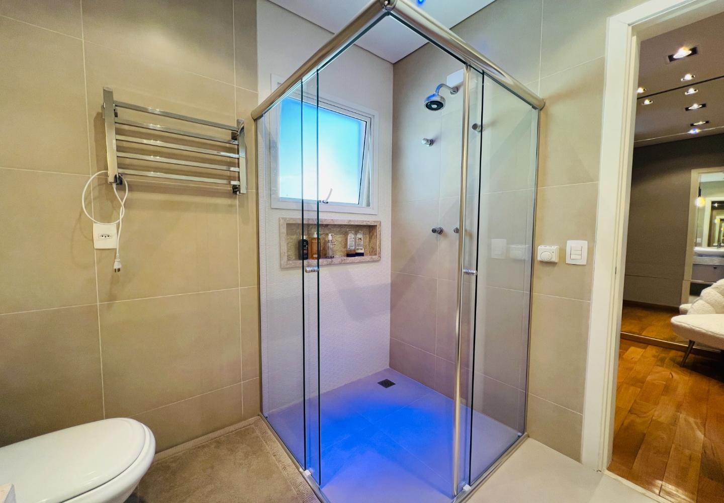 São cinco dormitórios no total, quatro deles suítes com piso aquecido e toalheiros térmicos. A suíte principal tem closet e banheira dupla.