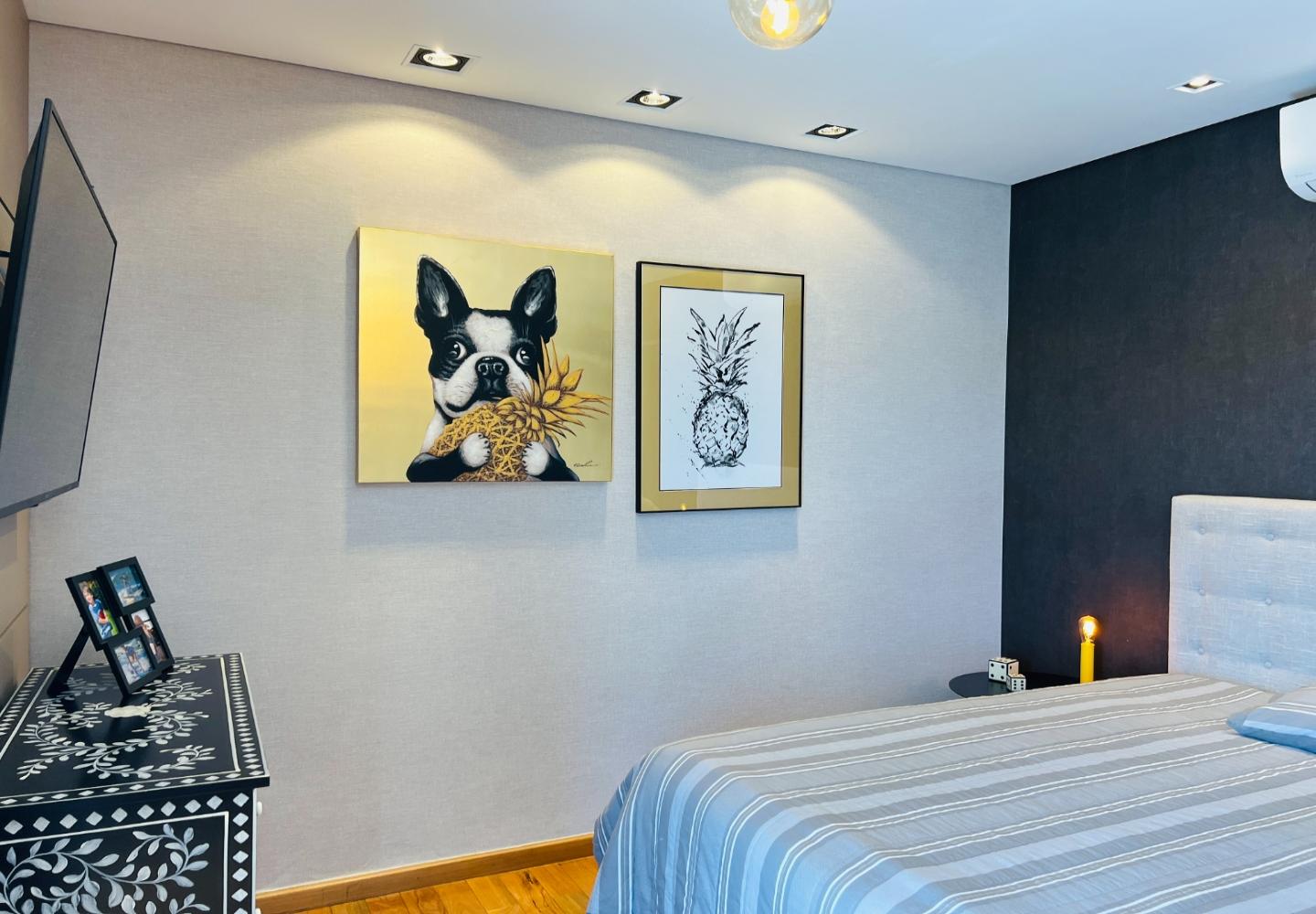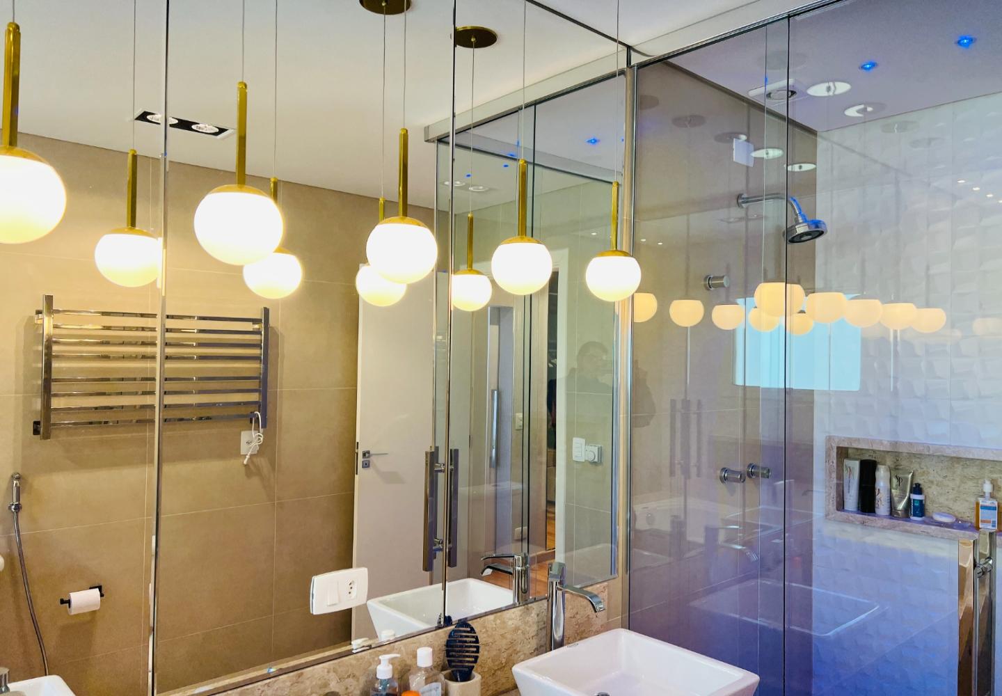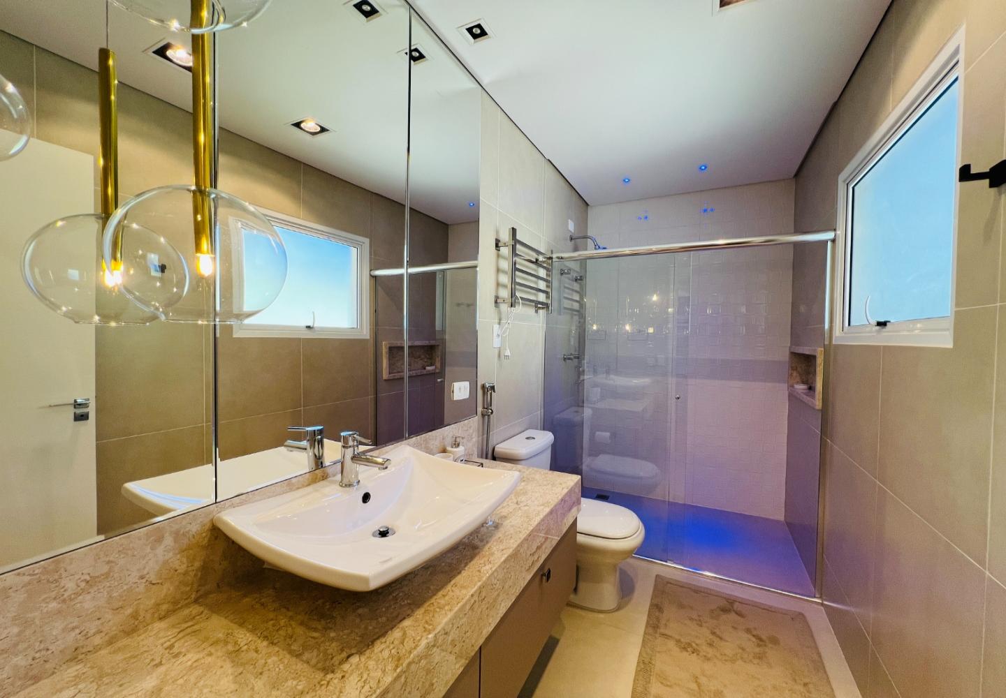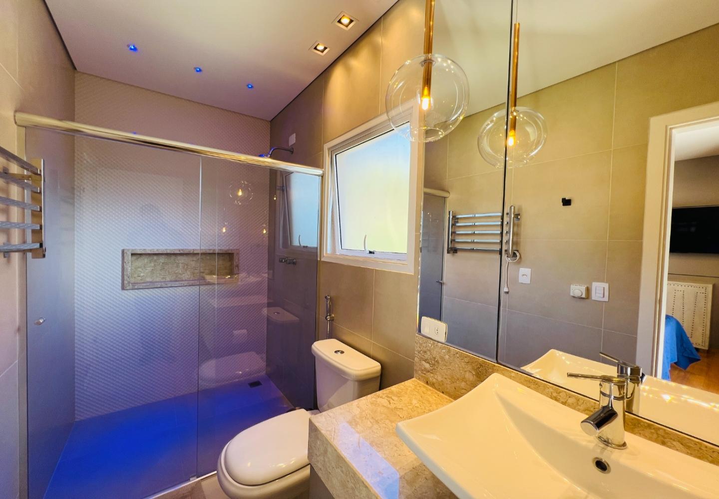 São cinco dormitórios no total, quatro deles suítes com piso aquecido e toalheiros térmicos. A suíte principal tem closet e banheira dupla.